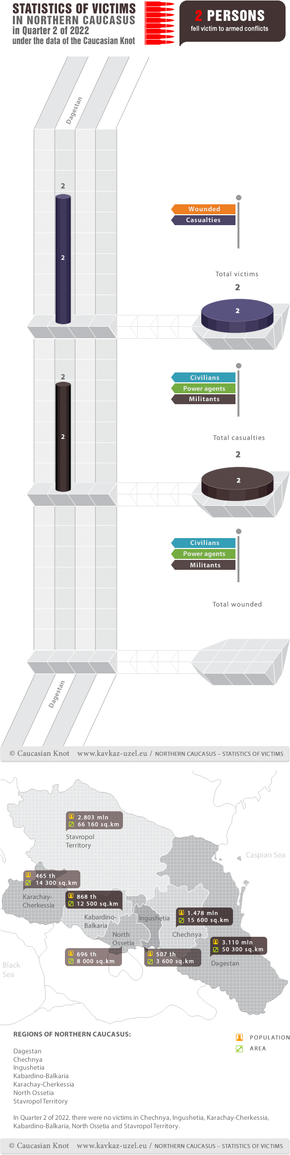 Infographics. Statistics of victims in Northern Caucasus in Quarter 2 of 2022 under the data of the Caucasian Knot