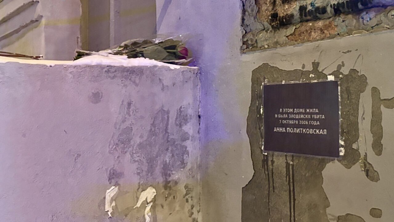 The memorial plaque on Politkovskaya's house has been restored for the 16th time.